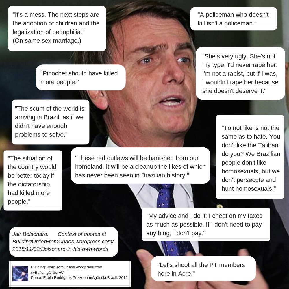 On Sunday Brazil voted to make Jair Bolsonaro their next president. He’s what the media euphemistically call a ‘controversial’ figure, who many fear could become a fascistic leader.