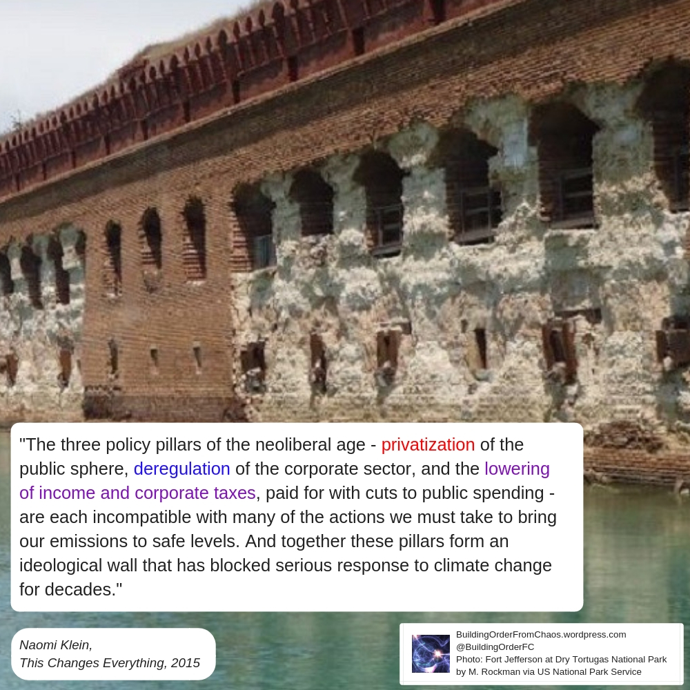 The quote in the infographic is not highly placed in the book (taken from Chapter Two, page 72), but it struck me as a good summary of the problems neoliberal capitalism creates for those of us who would like to prevent a potentially disastrous climate breakdown.