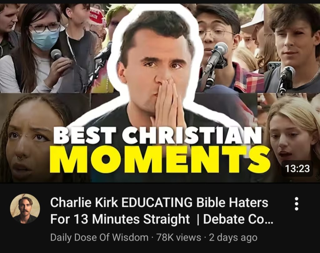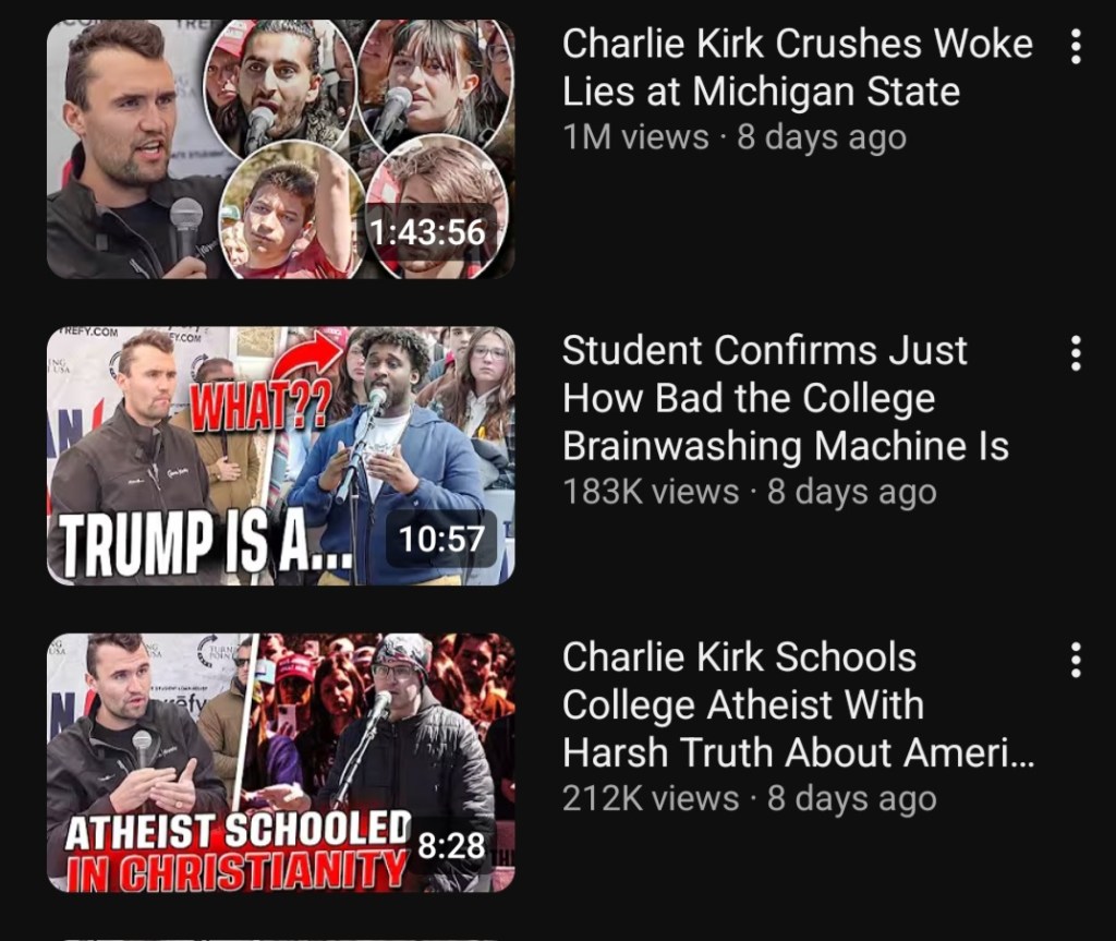 I can’t say for certain to what extent Charlie Kirk was propagandised, and to what extent he was a hateful person. But words are not morally neutral, they contain ideas, which shape our inner lives and affect how we behave to each other. In a discussion we try to understand how the other person thinks and lives their life, how they are similar and different from ourselves, and what makes them unique, special, and admirable. Discussion helps us to listen to other people and find ways we can cooperate or at least co-exist. Charlie Kirk was a small but significant part of a movement dedicated to making that process harder.
